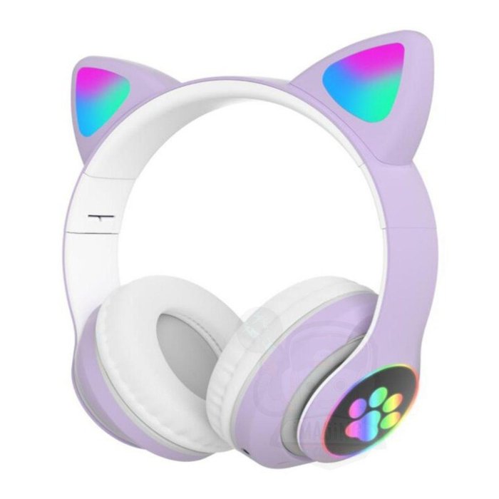 Fone de Ouvido Bluetooth Orelha de Gato com Luz Led Colorido Lilás