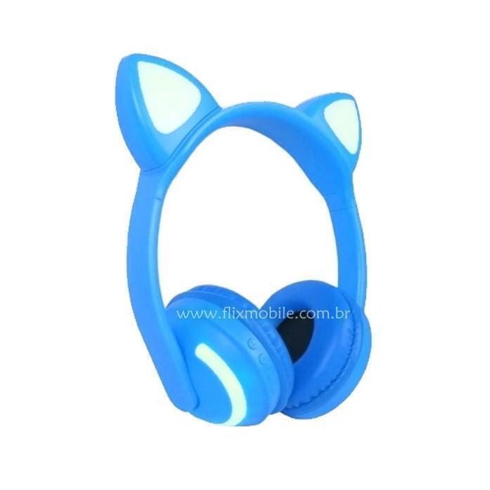 Fone de Ouvido Bluetooth Orelha Gatinho Exbom Com Led Azul