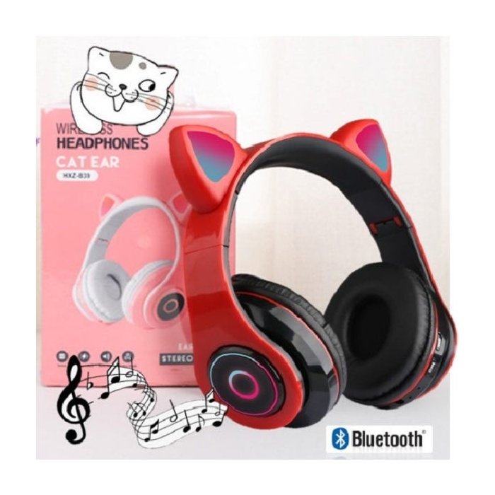 Fone de Ouvido Gatinho Bluetooth 5.0 Dobravel Vermelho