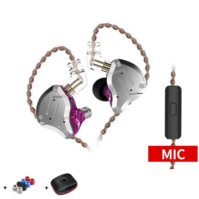 Fone de Ouvido KZ ZS10 Pro com Microfone - Roxo + Case