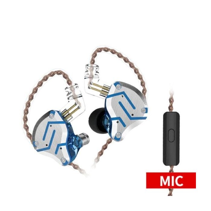 Fone de Ouvido Kz Zs10 Pro Híbridos Intra-Auricular In-Ear Microfone Moldado Cancelamento de Ruí - A Azul Brilhante
