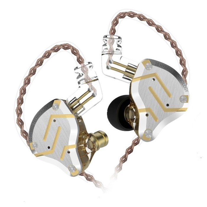 Fone de Ouvido KZ ZS10 Pro Sem Microfone - 5 Drivers cada lado(4ba + 1dd híbridos) - Glare Gold