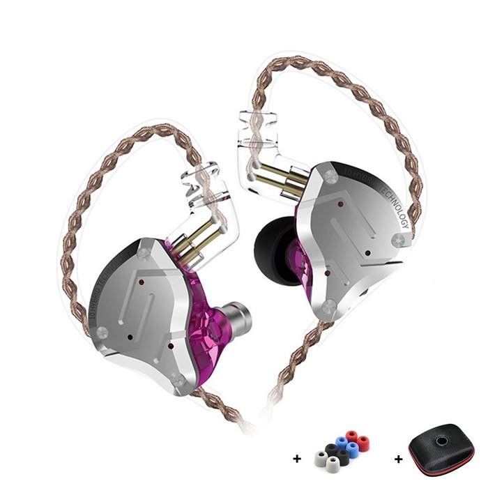Fone de Ouvido KZ ZS10 Pro sem Microfone - Roxo + Case