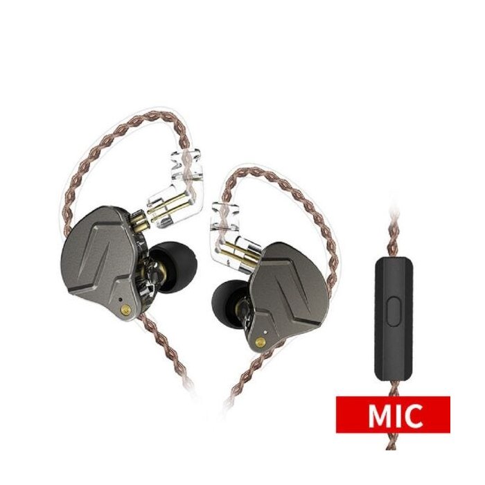 Fone de Ouvido Kz Zsn Pro Híbridos Intra-Auricular In-Ear Microfone Moldado Cancelamento de Ruído - Cinza
