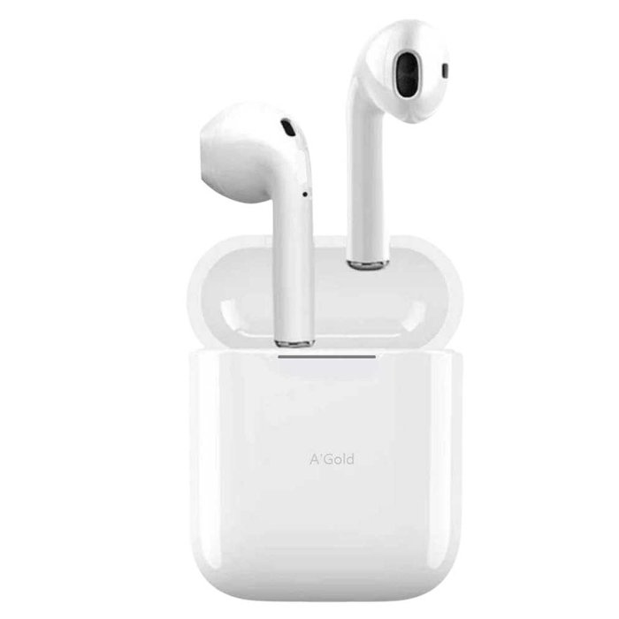 Este é um fone de ouvido a'Gold FN-11, com alta qualidade de som e resistência à água ( Suor ) no nível IPX4. Ele vem com um estojo de carregamento que permite até 2 cargas completas, um cabo de carregamento e é compatível com Bluetooth versão 5.0.