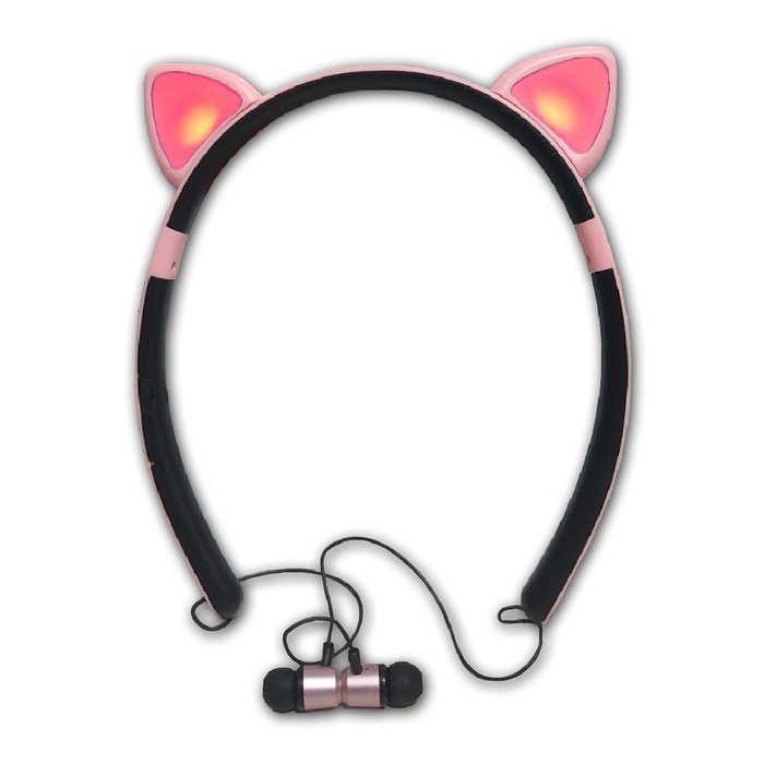 Fone Orelha de Gato Headphone Bluetooth Sem fio Led Tiara Rosa