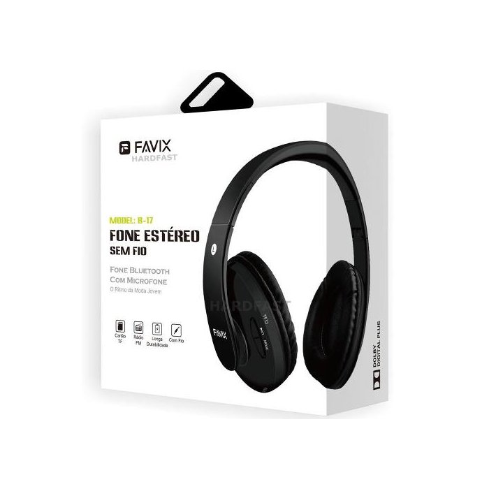 Fone Ouvido Favix B-17 Sem Fio Bluetooth Headset Fm Radio SD P/ Celular Stereo