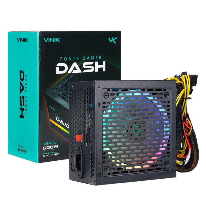 Fonte 600W Vinik DASH - Padrão ATX - Eficiencia 70% - RGB - Preto - VFG600WPR