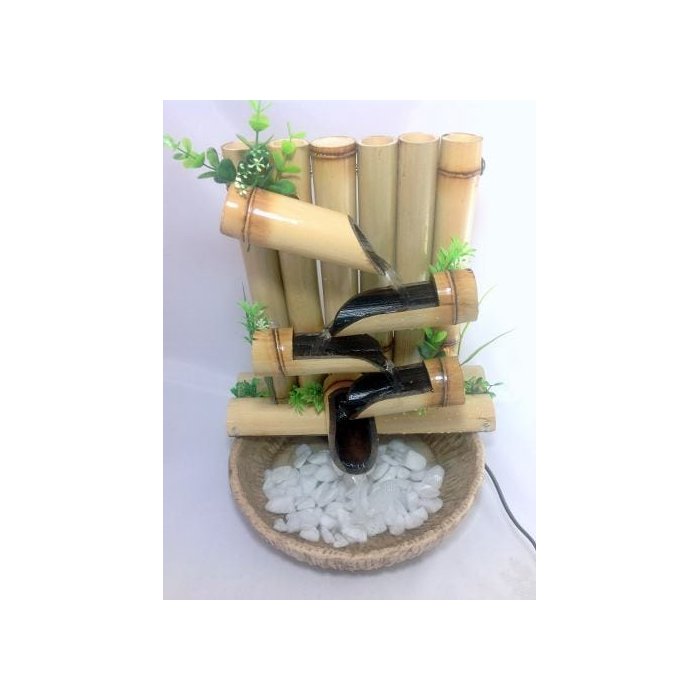 Fonte agua cascata bambu 5 quedas. veja tambem nossos outros modelos Confêccionada em bambu (mossô) tratado. Medidas: 30 cm compr. x 31 cm alt. x 33 cm larg. A bombinha de agua ja acompanha o produto. Informe a voltagem logo após a compra. Não gasta agua. Pedrinhas não acompanham o produto são somente sugestão de decoração. Não necessita de instalação, apenas uma tomada no local da instalação da fonte. Garanti de 3 mêses para a bombinha de agua. Favor informar a voltagem de sua fonte logo após a compra, 127/220 volts. Não fazemos outras medidas deste modelo.