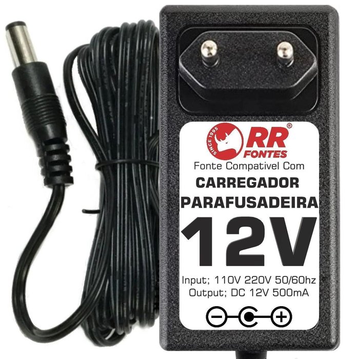 Carregador Compativel Com Parafusadeira Com Bateria 12V e Plug 5,5mm