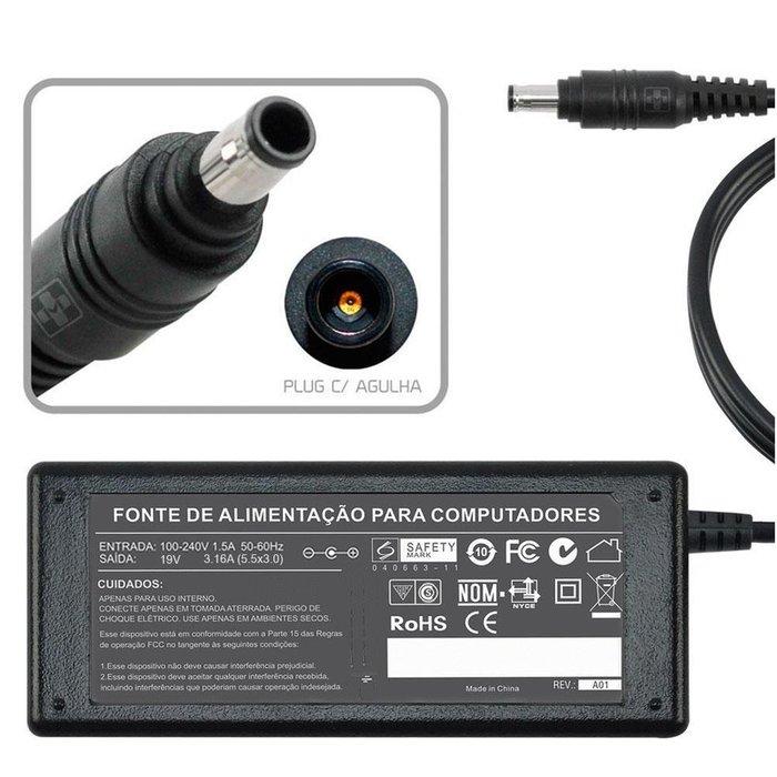FONTE CARREGADOR PARA NOTEBOOK 19V 3.16a 65W