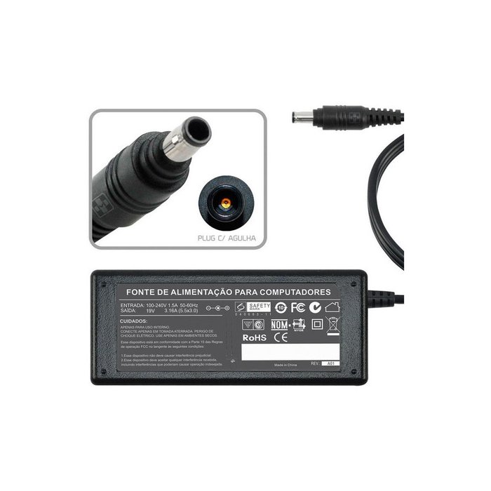 FONTE CARREGADOR PARA NOTEBOOK 19V 3.16a 65W