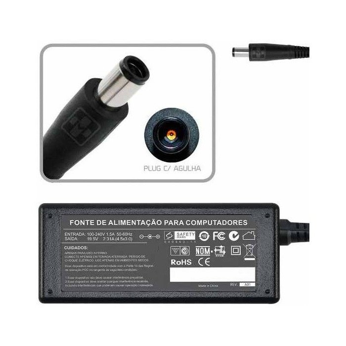 FONTE CARREGADOR PARA NOTEBOOK 19.5V 2.31A Plug. 4.43.0mm (671)