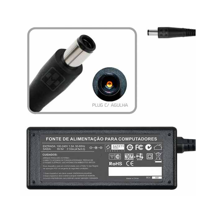 FONTE CARREGADOR PARA NOTEBOOK 19.5V 2.31A Plug. 4.4×3.0mm (671)