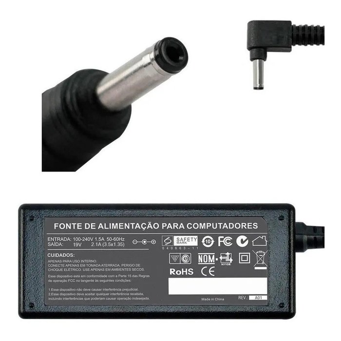 FONTE CARREGADOR PARA NOTEBOOK 19V 2.1A 40W - Plug. 3.0×1.1mm