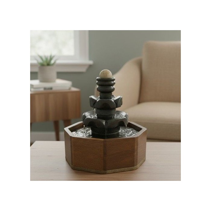 A água que flui suavemente sobre a pedra-sabão cria um murmúrio relaxante, proporcionando uma experiência auditiva tranquilizadora. O movimento contínuo da água também adiciona um elemento dinâmico à peça, tornando-a mais envolvente e agradável.