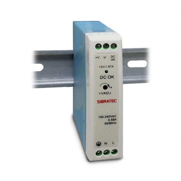 Fonte Chaveada para Trilho Din - Entrada 110-220vca e Saída 12vcc Fonte de 20w - 1,6a. Saída 12vcc