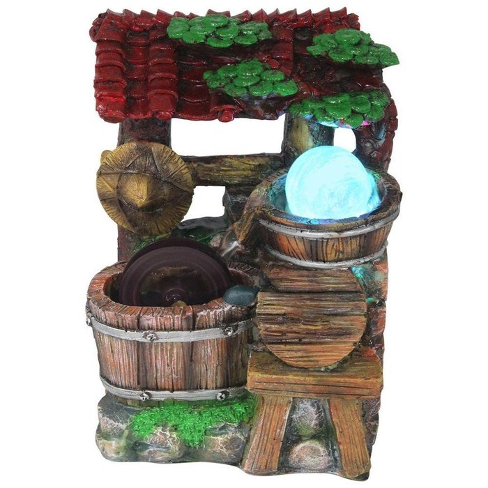 Fonte de Água Cascata Roda D'água Decoração em Resina - 220v