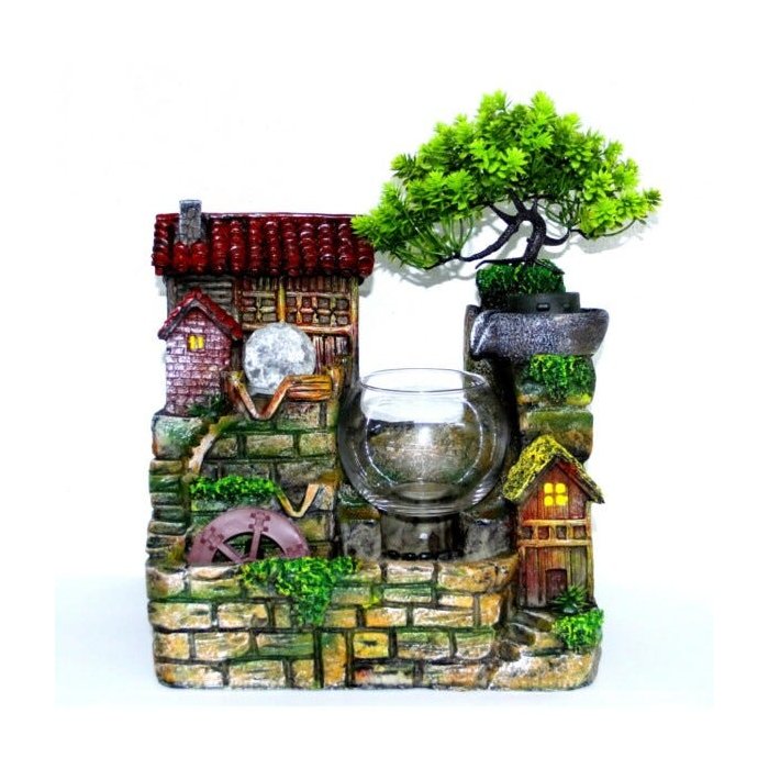 Fonte de Água com Aquário e Esfera, Árvore e Roda D'água (33cm)