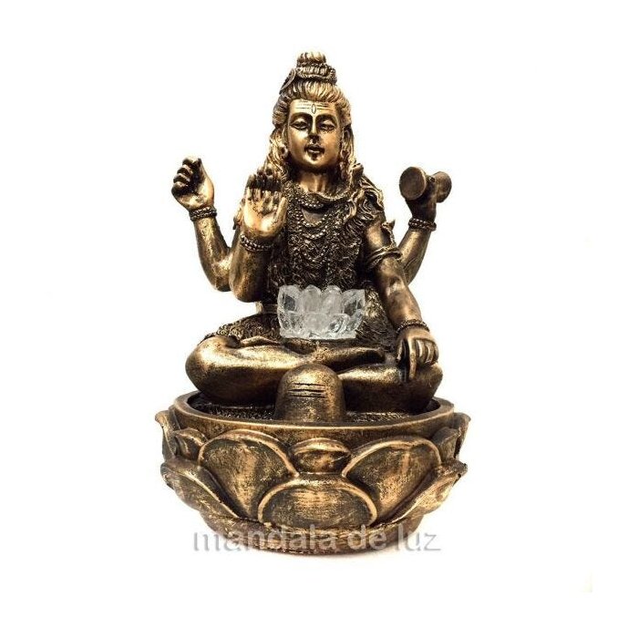 Fonte de Água Shiva com Flor de Lótus Dourado 28cm