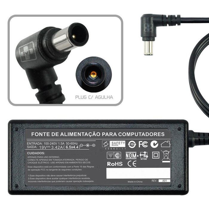 Fonte Carregador para LG com pino Central 19v 3,42a
