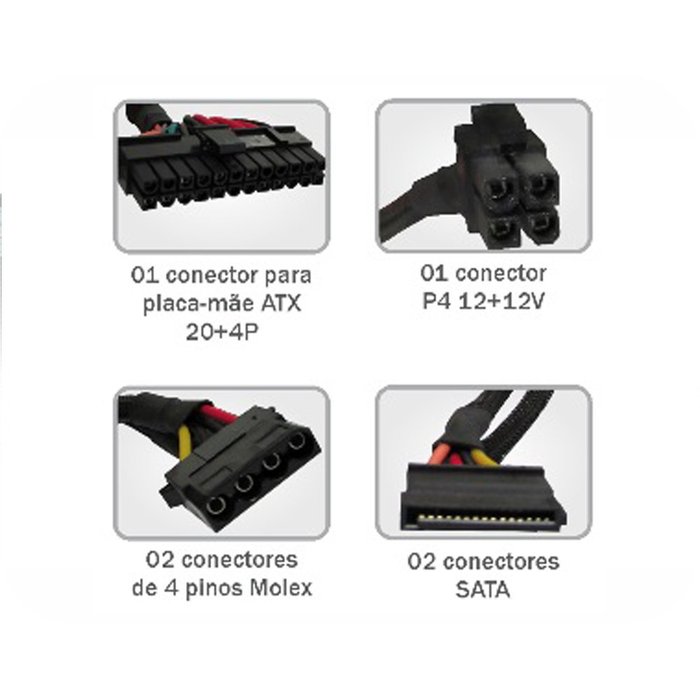 5 tipos de saÃdas (+12V, -12V, +5V, +3.3V, 5VSB)
