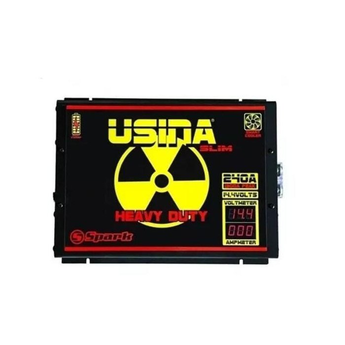 Produto de excelente qualidade, a nova Fonte Automotiva Digital Spark Usina 240 Amperes 14,4 V Bivolt - Smart Charger e Smart Cooler com o Voltímetro Integrado é mais uma integrante da família Usina.