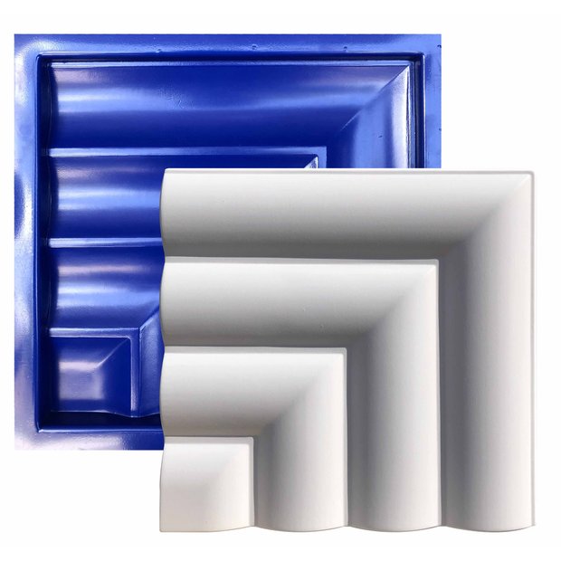 Vantagens do ABS- Menor custo em relação à forma de silicone.- Material simples de trabalhar.- Excelente acabamento.- Maior durabilidade em relação ao bicomponente.- Fácil manuseio.- Riqueza nos detalhes.- Ideal para placas cimenticias.