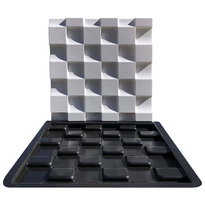 Forma de Gesso e Cimento Placa 3D ABS - XadrezMolde ABS Forma 3D utilizada para fabricação de placa de gesso decorativa para Parede 3D em áreas internas e externas (Para uso externo recomendamos que seja fabricada com um mix de gesso e cimento).A forma é fabricada com ABS virgem (plástico semi-rígido) de 1.5mm, não acompanhando a manta de e.v.a.