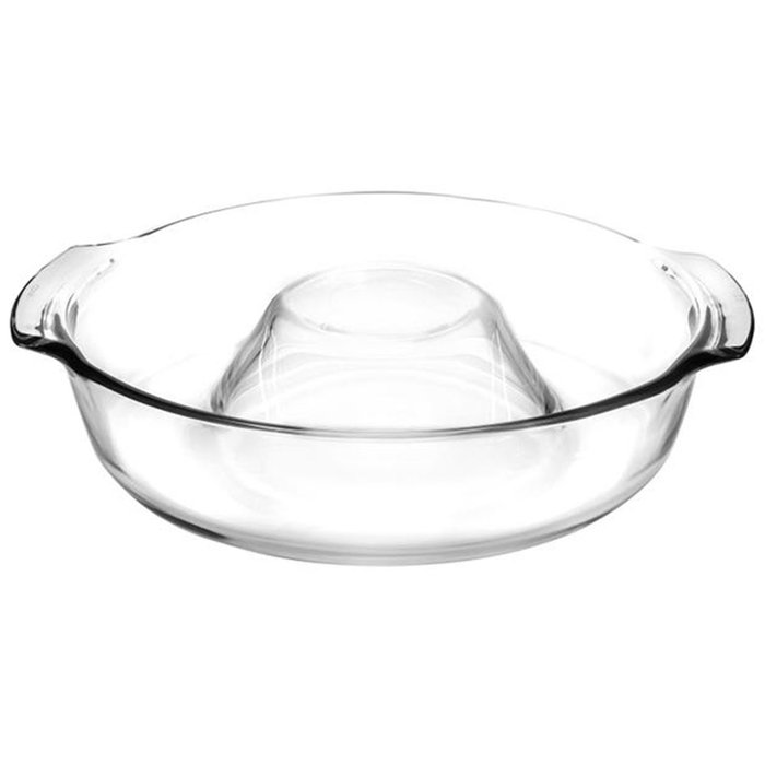 Forma para bolo e pudim com 25 cm diâmetro em vidro temperado.;