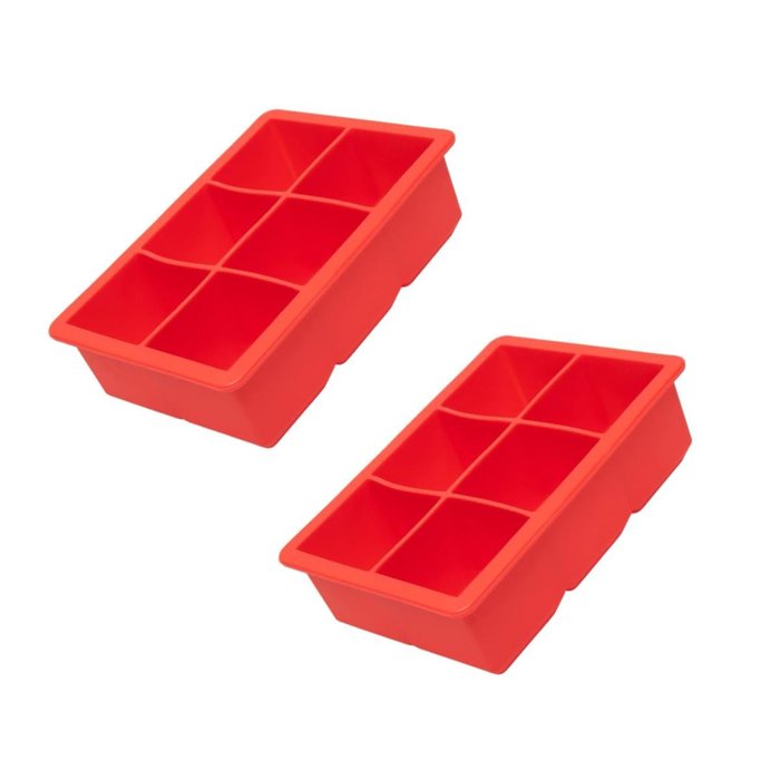 Forma Gelo Silicone 2 Unid. 6 Cubos Grande Quadrado Vermelho Vermelho