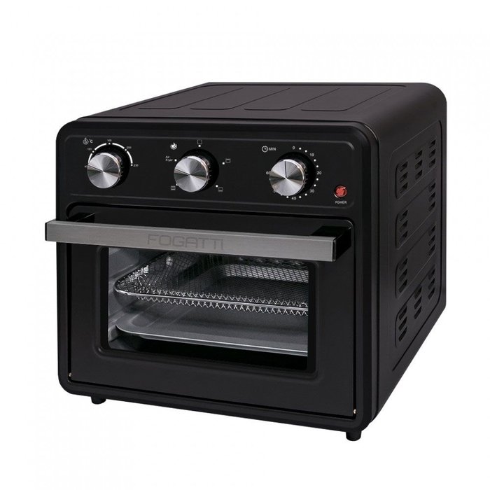 Os alimentos são cozidos com a ajuda de um ventilador que circula o ar quente na fritadeira, proporcionando uma textura crocante similar à fritura em óleo.
