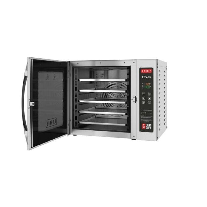 O Forno de Convcção FCV-35 G Paniz é ideal para lojas de conveniência, confeitarias, padarias, lanchonetes, cafés bistrô, cozinhas gourmet e afins. Excelente na preparação de alimentos rápidos como pão de queijo, cookies, brownies, merengues, folhados, pastéis, pizzas, croissant, macarons, suspiros, pão francês, biscoito de polvilho, tortas, bolos e outros doces e salgados. Seu tamanho facilita para quem tem pouco espaço na cozinha, tendo um forno com a mesma função de um forno turbo grande, mas compacto.