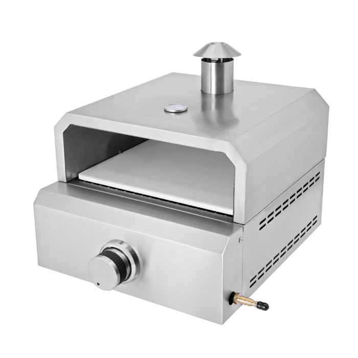 O forno é feito de aço inoxidável, fácil de montar e vem com uma pedra de pizza de 32x30 cm. A pedra para pizza pode atingir uma temperatura de até 450 °C - para que a pizza fique pronta em tempo recorde.