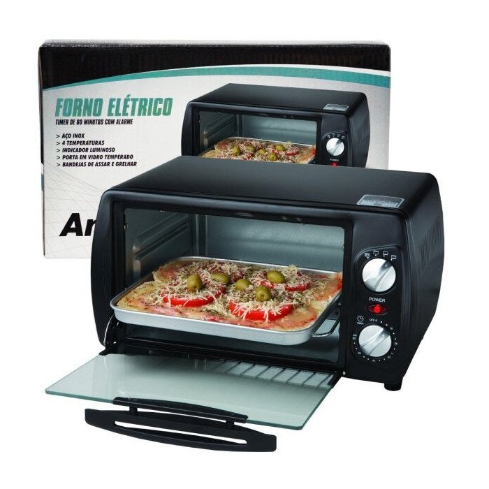 Forno Elétrico de Bancada 9 Litros 1000W Multifunção Timer Alarme Amvox AFR 3800 Preto - .Escolha su