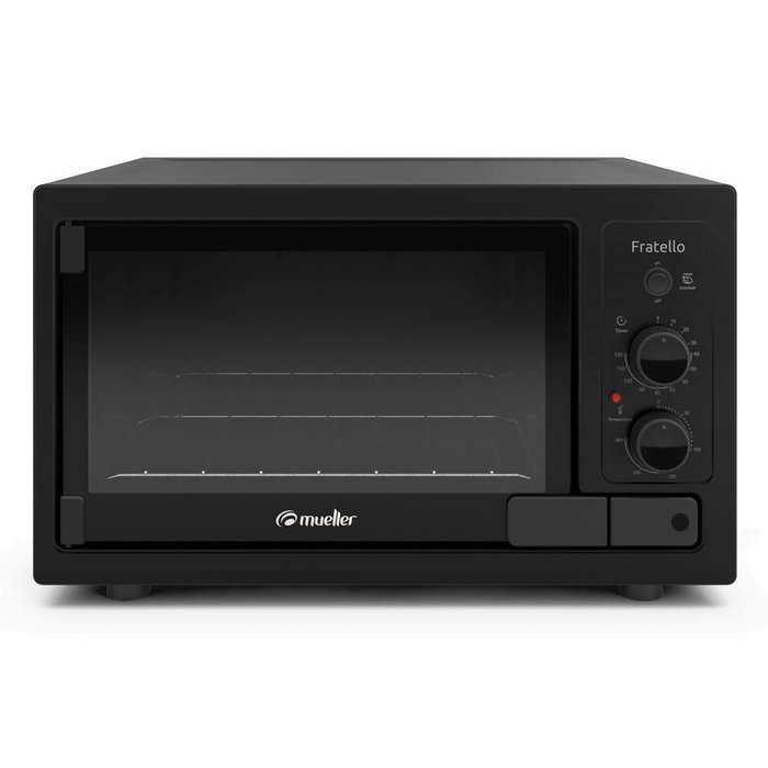 Forno Elétrico de Bancada Mueller Fratello Preto Fosco 44L 127VVocê que busca por um design moderno vai adorar o Forno Fratello Preto Fosco da Mueller. Ele conta com grill, timer de até 120 minutos, interior com a tecnologia total clean que facilita a limpeza e, a capacidade de 44 litros, oferece espaço suficiente para os mais variados assados. Além disso, o Forno Fratello possui bandeja coletora de resíduos esmaltada e removível que protege a resistência de baixo contra respingos de gordura, aumentando a vida útil do seu forno. O Forno Elétrico Fratello oferece eficiência para assar e dourar com baixo consumo de energia. Uma solução inteligente que garante mais economia para você.Informações Técnicas- Marca: Mueller Fogões
