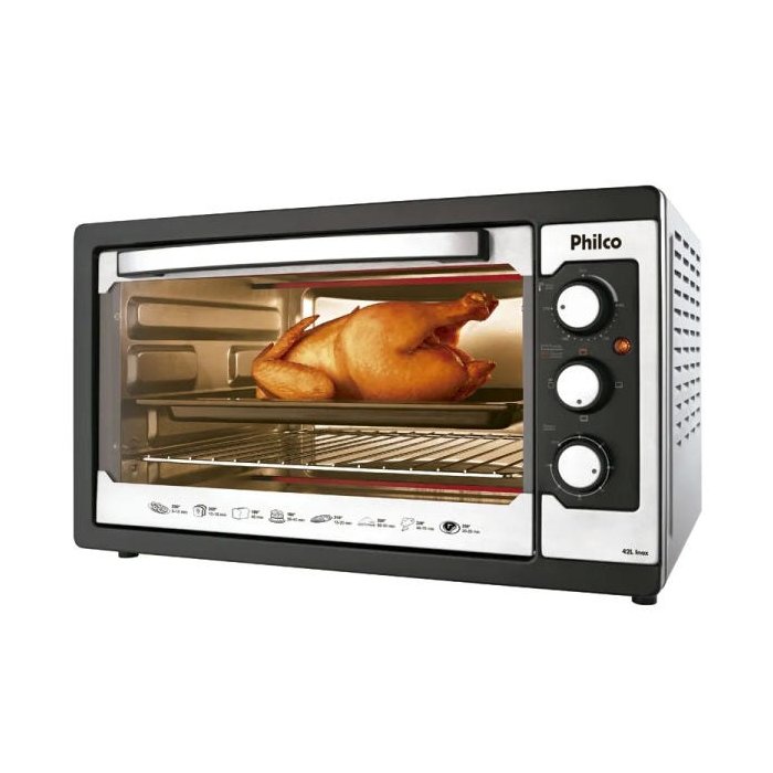 Forno Elétrico Inox 42 Litros, 1700W de Potência, Função Timer 90 Minutos e Multifunções