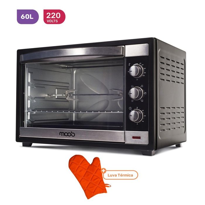 Forno Eletrico Moob 60L 2200W Preto Espeto Giratorio 220V (com Luva Termica) Preto