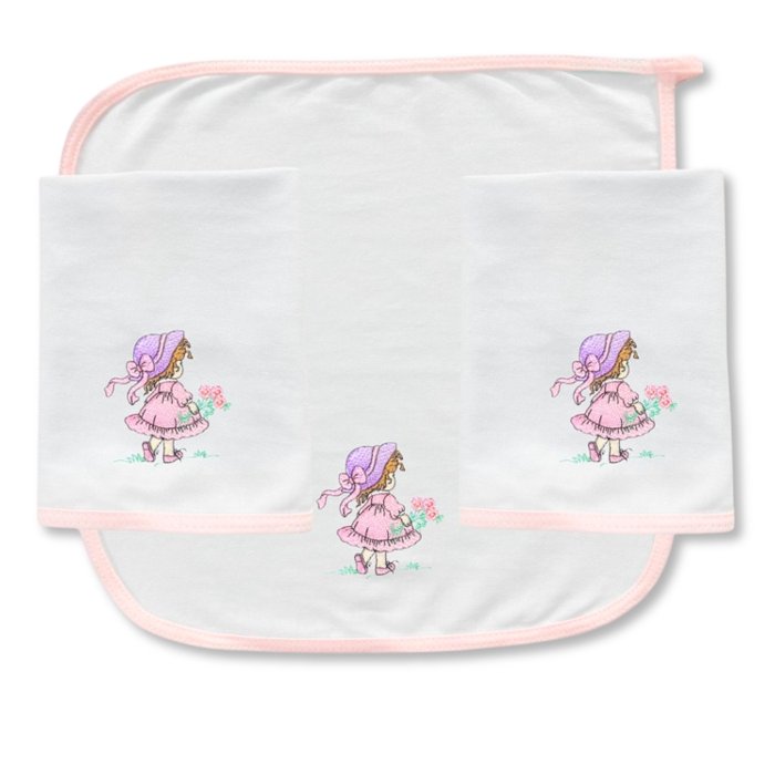 Fraldas de Boca em Malha Menina no Jardim Rosa 3 Peças