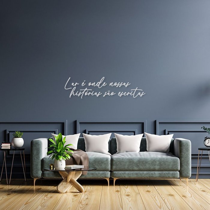 Frase de Parede, Lar e Onde Nossas Historias Sao Escritas 200x53, Cinza. em Mdf 6mm, para Sala, para