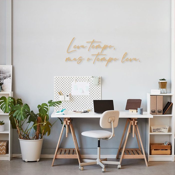 Frase de Parede, Leva Tempo 250x97, Areia. em Mdf 6mm, para Sala, para Quarto, Decoração Escritório,
