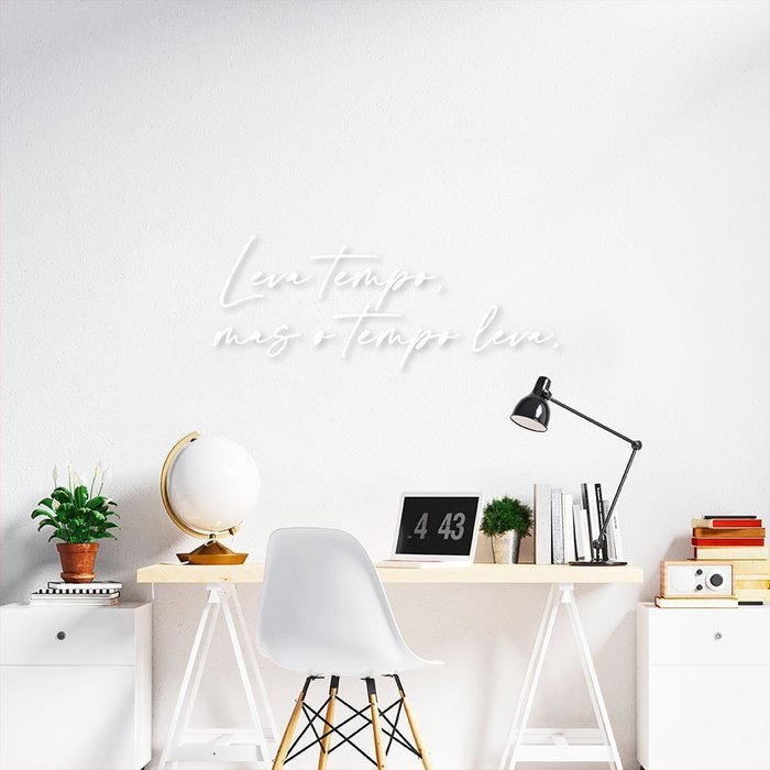 Frase de Parede, Leva Tempo 250x97, Branco. em Mdf 6mm, para Sala, para Quarto, Decoração Escritório Branco