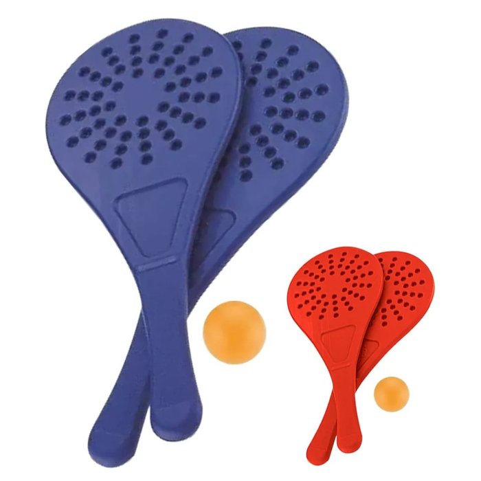 Brincadeira saudável, que pode envolver quantas pessoas quiser e que agrada desde crianças até adultos! Além de ser um esporte muito divertido, vai colocar todos pra jogar! As raquetes são feitas em Polietileno (plástico resistente e sem rebarbas) são leves e garantem maior conforto para as mãos dos jogadores, além de que flutuam na água, garantindo que não se percam no meio da diversão. O kit contém: 02 raquetes 01 bolinha de borracha