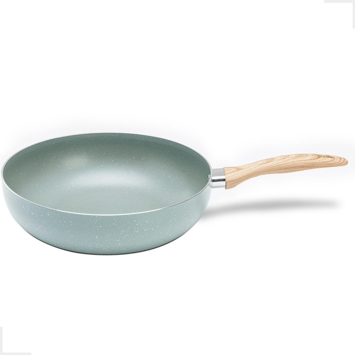 A Frigideira da Botanika na cor Verde traz sofisticação e o cabo em baquelite soft-touch de efeito amadeirado completa o design moderno desta peça.