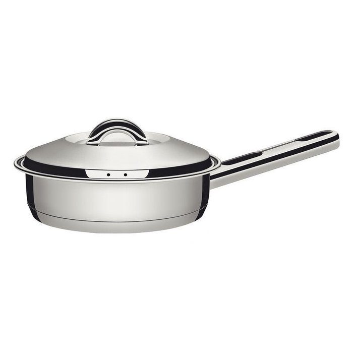 Frigideira em aço inox com fundo triplo. Pode ser utilizada nos fogões: elétrico, gás, indução e vitrocerâmica.