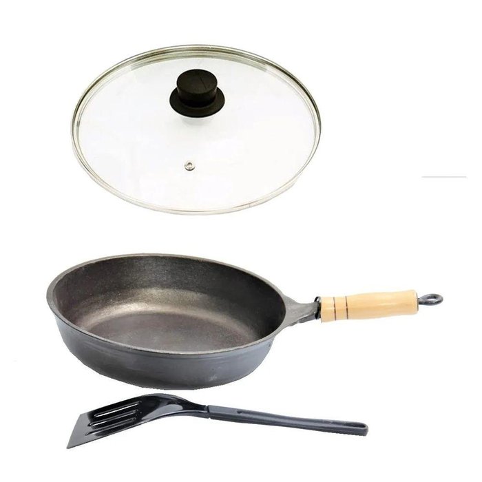 Frigideira Alta Antiaderente Cabo Tampa Vidro 24cm Espátula