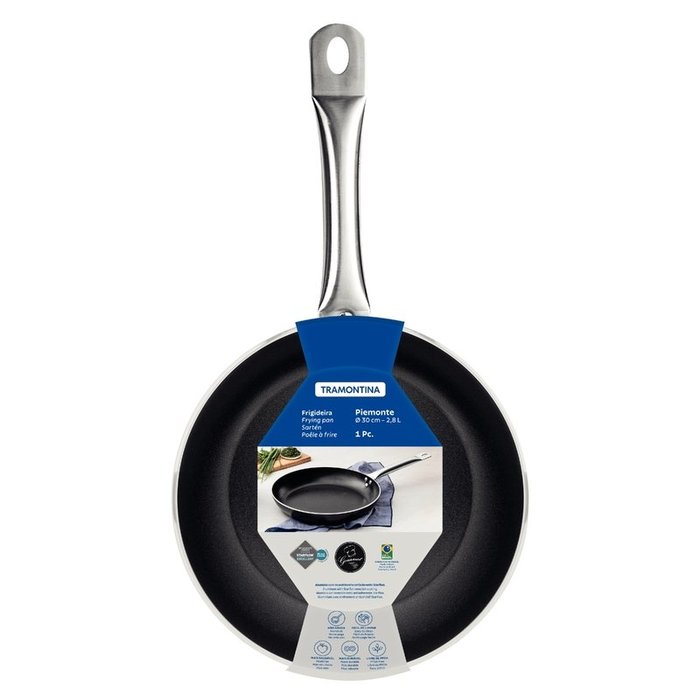 Prepare refeições incríveis com maior praticidade e funcionalidade, com a frigideira Tramontina Piemonte em alumínio com revestimento interno e externo em antiaderente Starflon Excellent preto 30 centímetros de diâmetro 2,8 litros. Parceira perfeita para suas aventuras culinárias, ela é desenvolvida em alumínio e possui revestimento em antiaderente Starflon Excellent, tanto na parte interna quanto externa. Devido a essas características, ela proporciona um cozimento rápido e uniforme dos alimentos, evitando que eles grudem na superfície, permitindo que você prepare seus pratos favoritos com facilidade e desfrute de uma limpeza simples e prática. O cabo de aço inox é resistente e oferece segurança durante o manuseio, permitindo que você cozinhe com confiança, precisão e estabilidade. Aprimore sua experiência na cozinha e crie um novo mundo de possibilidades!