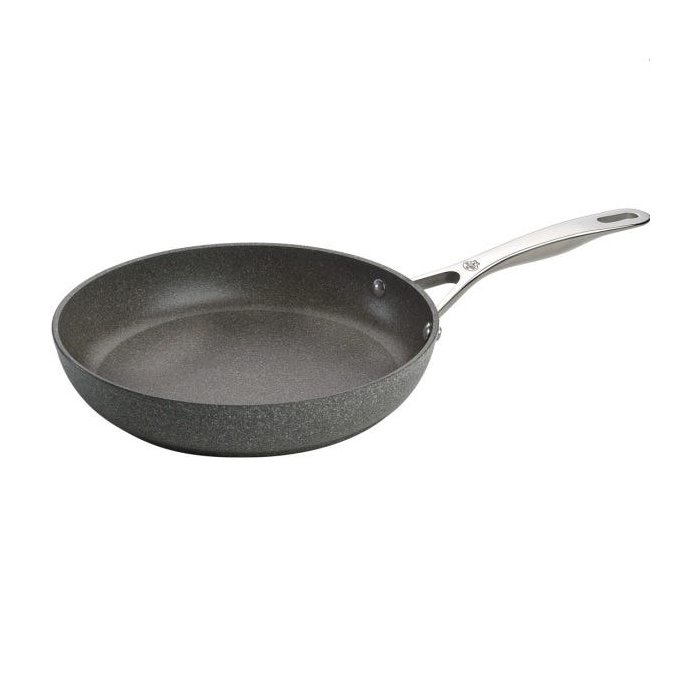 Forjada em alumínio sólido, esta frigideira esquenta rapidamente, ao mesmo tempo o cabo ergonômico em aço inoxidável permanece em temperatura normal.