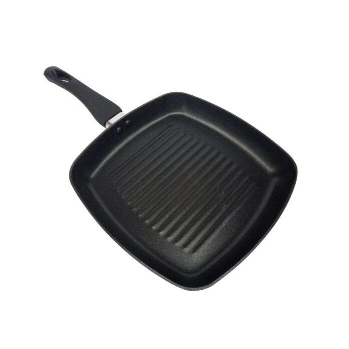 Frigideira Grill é produzida em alumínio fundido trás revestimento cerâmico antiaderente, fácil de limpar e resistente a calor e corrosão.