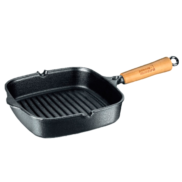 Frigideira Cook Grill Grelha Ferro Fundido Com Cabo de Madeira